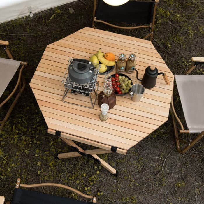 Longing for the warm scene of everyone sitting around, sharing food, talking and laughing in the camp? A table that can be set up quickly, can accommodate multiple people, and has a natural ambience is essential. This outdoor solid wood octagonal simple camping table is tailor-made for you who love camping and socializing. Breaking through the limitations of traditional square circles, it features a unique octagonal design that combines the durability of high-quality solid wood with a revolutionary easy-to-install system that allows you to create a centripetal dining and gathering centre on grass, beach or camp in minutes without the need for complex tools.